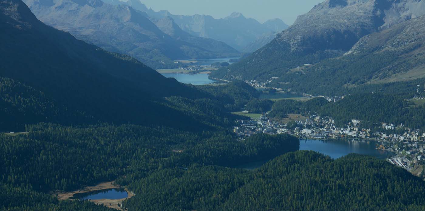 Aussicht auf die Seen des Oberengadins und das Berninamassiv