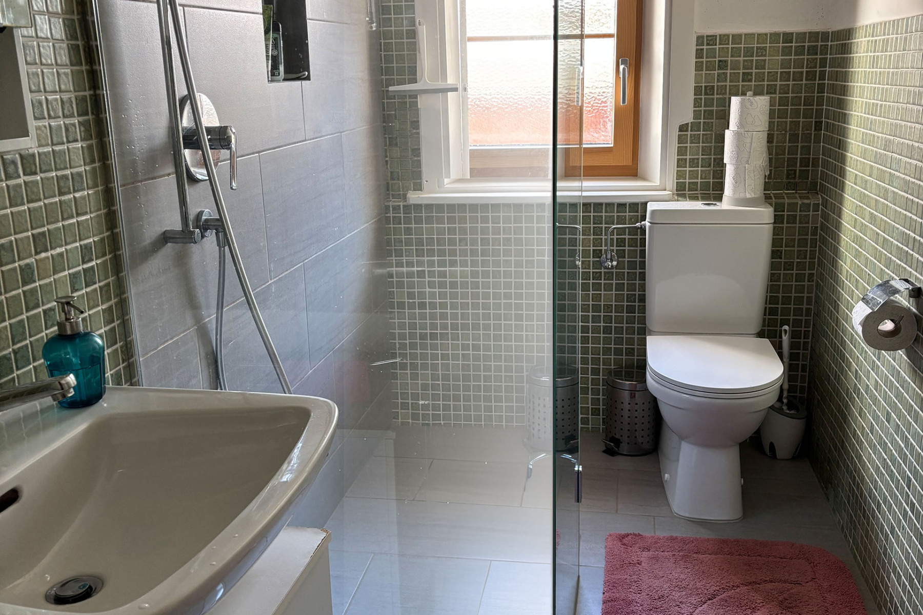 Durch den Keller gelangt man in den alten Stall und den Garten, über die Scheune geht's auf die grosse Terrasse, von der man einen wunderschönen Blick auf die Berge hat und dem Fluss Inn lauschen kann.